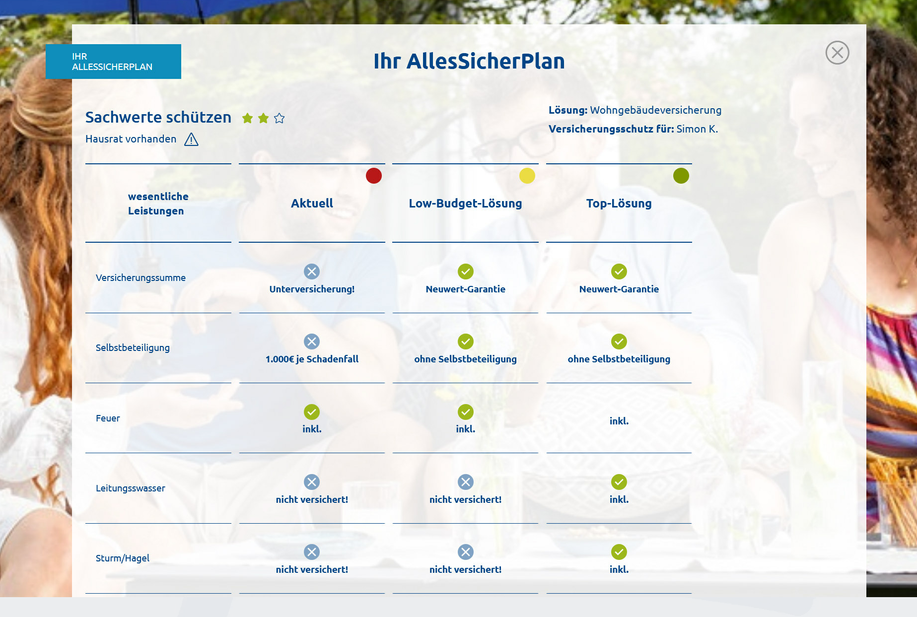 Wir prüfen deine aktuellen Versicherungen, Werte und Ziele.Lückenanalyse: